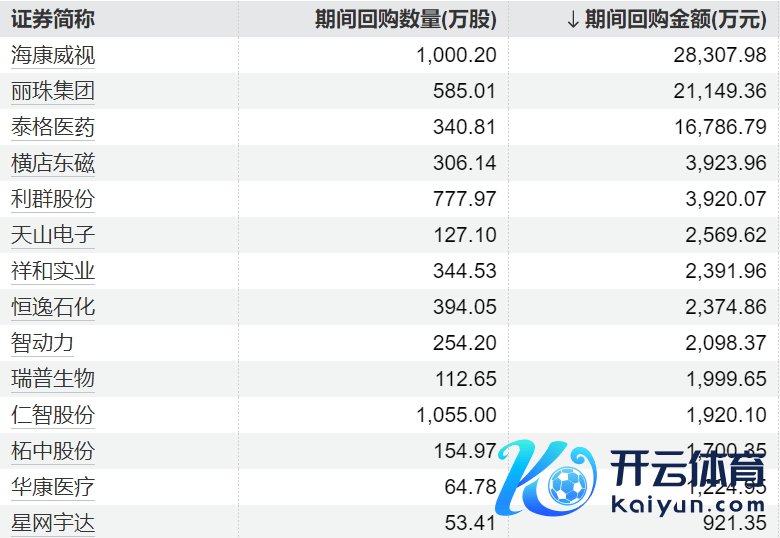 32家上市公司股票获回购开云kaiyun官方网站,海康威视回购金额最高32家上市公司股票获回购,海康威视回购金额最高